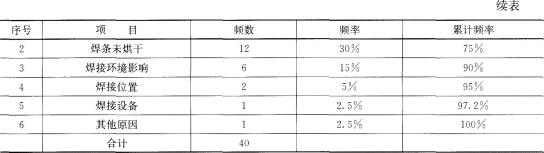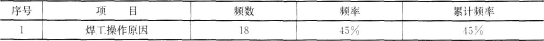 专职检查员在第一阶段检查焊口质量时,一共检查出40处气孔超标,分析了原因,列表如下: