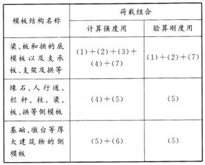模板、支架和拱架设计计算的荷载组合表如下,表中各数字表示的荷载是:(1)模板、支架和拱架自重;(2)新浇筑圬工结构物的重力;(3)人员、材料、机具等荷载;(4)振捣混凝土产生的荷载;(5)新混凝土对侧模板压力;(6)混凝土倾倒时产生的水平荷载;(7)其他可能产生的荷载,如雪载、风载、水流压力、漂浮物冲击荷载。(注:本题知识点在第四版新教材中已删除)