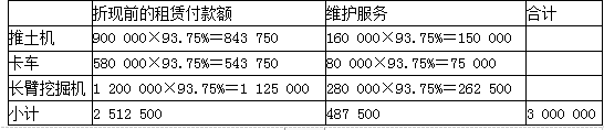 甲公司将合同对价3 000 000元分摊至三个租赁部分和非租赁部分。三个租赁的单独价格总额=900 000+580 000+1 200 000 =2 680 000(元); 三个非租赁的单独价格总额=160 000+80 000+280 000= 520 000(元); 分摊率=合同对价3 000 000/单独价格之和(2 680 000+520 000)=93.75% 。