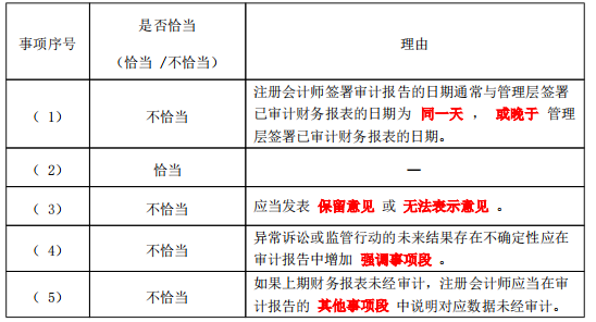 ( 1) A注册会计师签署审计报告的日期为 3月 25日,由于当天甲公司的管理层在外出差,于次日批准并签署了已按审计调整建议修改后的财务报表。