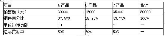 某企业计划生产A、B、C三种产品,固定成本总额为50000元,它们的销售量、销售单价、单位变动成本资料如下表所示。