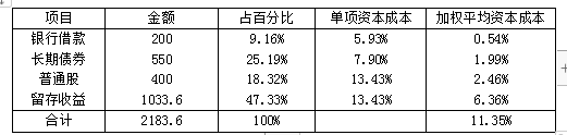 (7)当前国债的收益率为4.5%,市场上普通股平均收益率为12.5%。(计算单项资本成本时,百分数保留2位小数)
