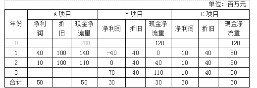 某公司的项目资本成本为10%,正依据下表信息决策A、B、C三个投资项目: