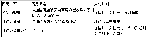 (3)每年特许经营费按酒店收入的6.5%上缴,加盟后每年年末支付;