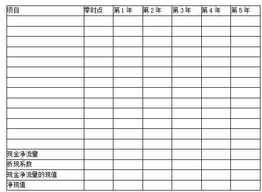 (2)计算W项目的初始(零时点)现金流量、每年的现金净流量及项目的净现值(计算过程及结果填入下方表格中),判断项目是否可行并说明原因。