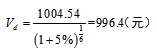 40+40×(P/A,5%,4)+1000×(P/F,5%,4)=1004.54(万元)