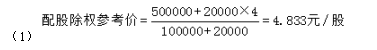 (2)每股原股票的配股权价值=(4.833-4)/5=0.167(元)