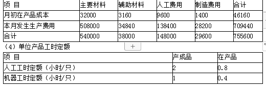 (2)主要材料在生产开始时一次性全部投入,辅助材料陆续均衡投入,月末在产品平均完工程度60%。