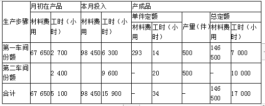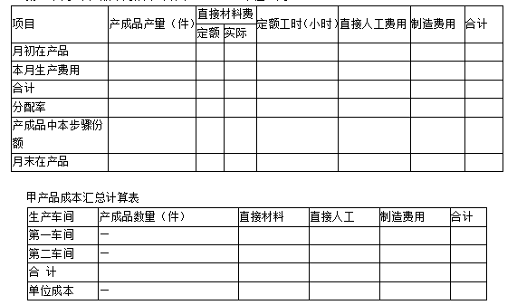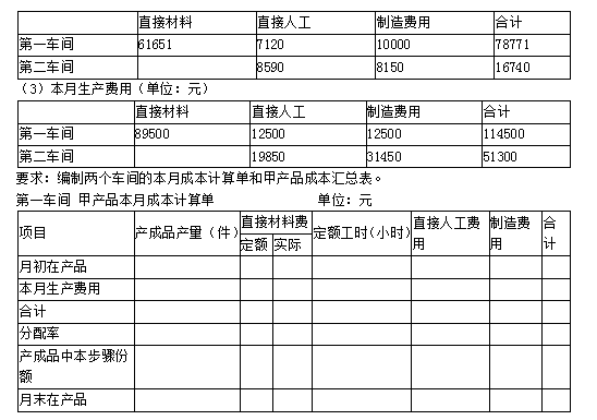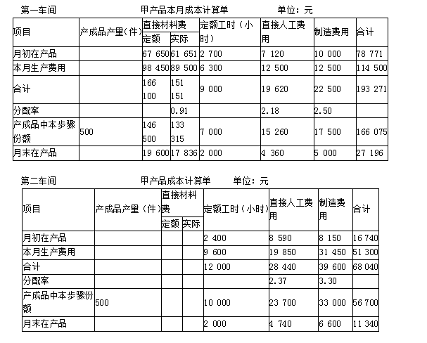 (1)编制第一、二步骤成本计算单(结果填入下方表格中,不用列出计算过程)。
