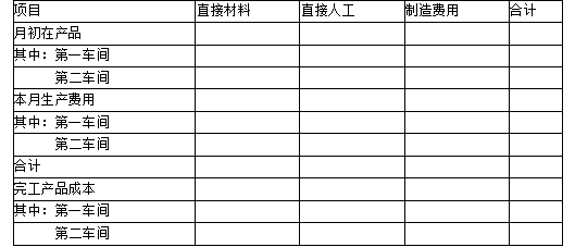 (1)编制第一、二步骤成本计算单(结果填入下方表格中,不用列出计算过程)。