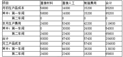 由于第二车间无月末在产品,所以本月发生的各项生产费用合计全部计入本月完工产品成本。
