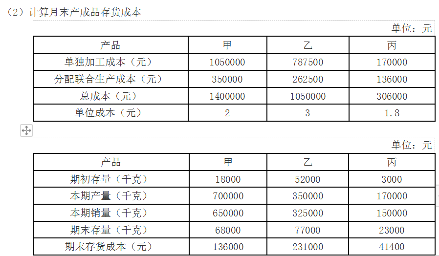 (2)编制产成品成本汇总计算表(结果填入下方表格中,不用列出计算过程)。