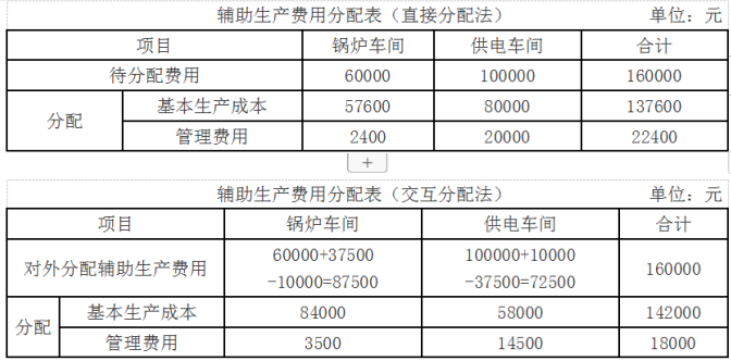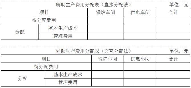 (1)分别采用直接分配法,交互分配法对辅助生产费用进行分配(结果填入下方表格中,不用列出计算过程)。