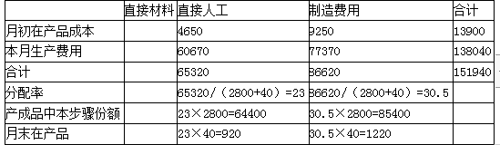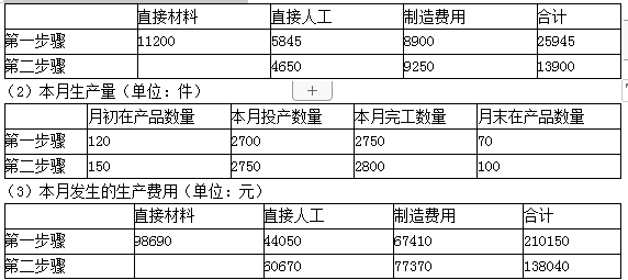 (1)编制第一、二步骤成本计算单(结果填入下方表格中,不用列出计算过程)。