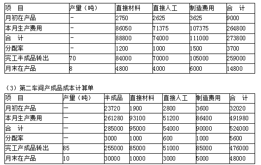 (2)编制第一车间的半成品成本计算单(结果填入下方表格中,不用列出计算过程)。