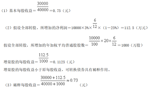 (1)基本每股收益;(2)计算增量股的每股收益,判断是否具有稀释性;(3)稀释每股收益。