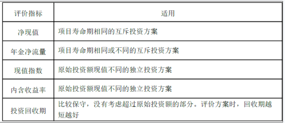 知识点:第6章第3节。各财务评价指标的适用情况: