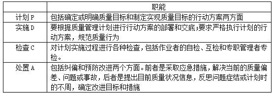 B项:由上表可知,明确质量要求和目标,提出质量管理行动方案属于P阶段的职能,故B项正确。