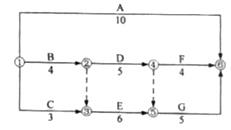本题考查的是网络计划时间参数的计算。D工作最早开始时间4,最晚开始时间5,最早完成时间9,总时差5-4=1,F工作最早开始时间9,D工作自由时差9-9=0。