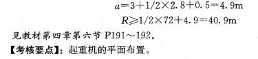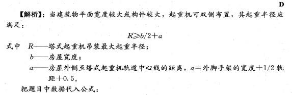 某厂房平面宽度为72m,外搭脚手架宽度为3m,采用轨距为2. 8m塔式起重机施 工,塔式起重机为双侧布置,其最大起重半径不得小于( )。