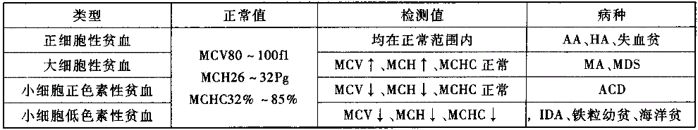 贫血的红细胞形态分类见下表。贫血的按红细胞形态分类