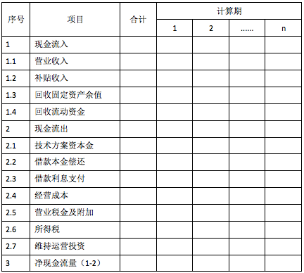 资本金现金流量表如下: