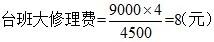 本题中,耐用总台班数是4500台班,大修理间隔为900台班,则大修理次数共4次。
