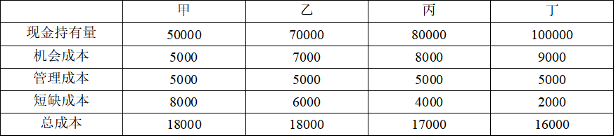 某企业有四种现金持有方案可供选择,从成本分析的角度来看,该企业最佳的现金持有量为( )元。