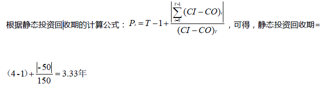 本题考核的是静态投资同收期的计算,本题中累计净现金流量见下表: