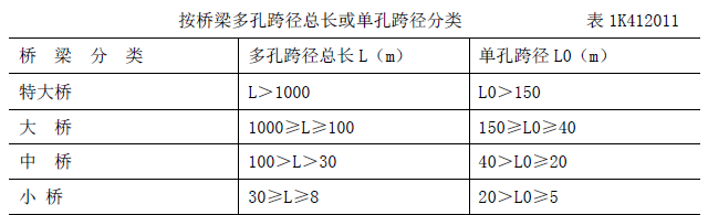 注:①单孔跨径系指标准跨径。梁式桥、板式桥以两桥墩中线之间桥中心线长度或桥墩中线与桥台台背前缘线之间桥中心线长度为标准跨径;拱式桥以净跨径为标准跨径。②梁式桥、板式桥的多孔跨径总长为多孔标准跨径的总长;拱式桥为两岸桥台起拱线间的距离;其他形式的桥梁为桥面系的行车道长度。