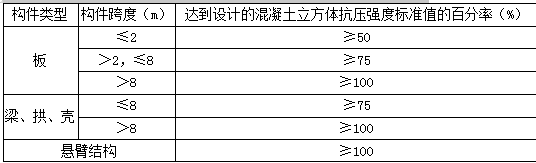 本题考查的是模板的拆除。当混凝土强度达到设计要求时,方可拆除底模及支架;当设计无具体要求时,同条件养护试件的混凝土抗压强度应符合下表规定。