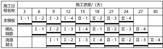注:Ⅰ、Ⅱ表示楼层;1、2、3、4表示施工段