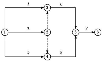 本题考查的是双代号网络计划。选项B,A完成后进行C工作。选项C,BD完成后进行E。选项D,F的紧前工作是CE。