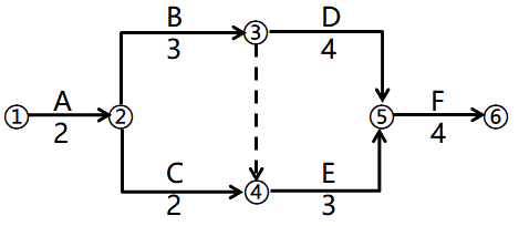 本题考查的是双代号网络计划。最迟开始时间=最早开始时间+总时差,E的最迟开始时间=5+1=6。